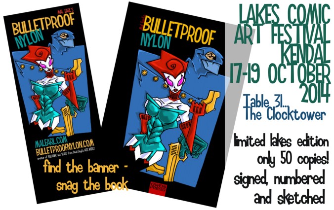 I’ll be bringing copies of BOUND and the last remaining BULLETPROOF NYLON PRIMER books, if anyone needs a signed memento of what promises to be a grand day out!